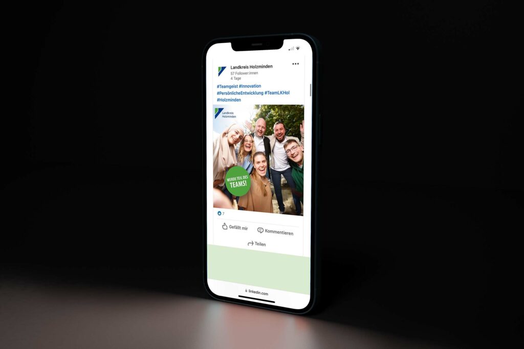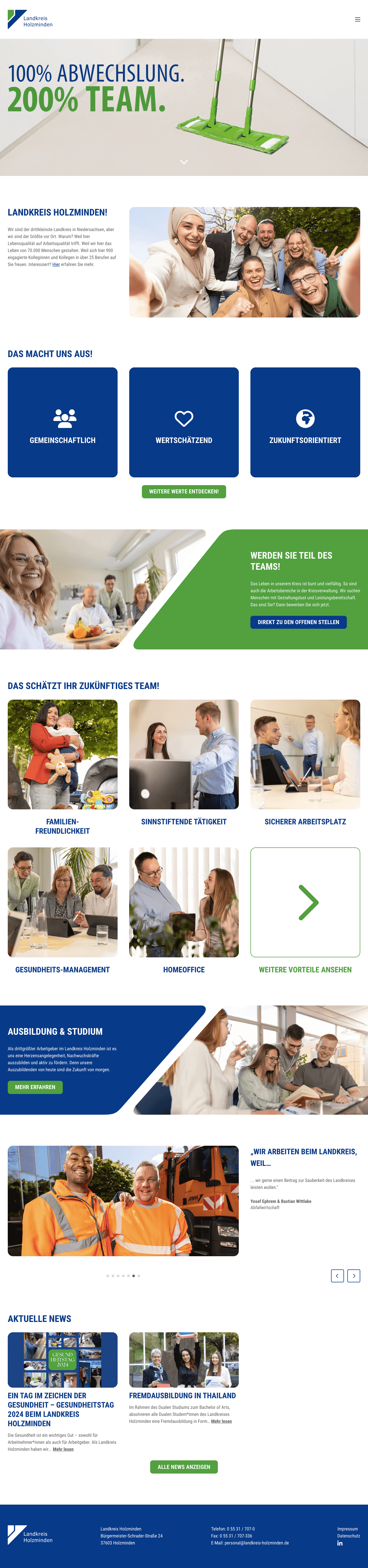 Ein neues Karriereportal wurde entwickelt, welches die Sichtbarkeit des Landkreises als attraktiven Arbeitgeber mit einem starken „200 % Teamgefühl“ stärkte. Durch das Kreativkonzept gelang es, den „Teamgeist“ des Landkreises Holzminden deutlicher zum Ausdruck zu bringen. Gezielte digitale Kampagnen sowie die Social-Media-Kampagne unterstützt zusätzlich diese Positionierung.