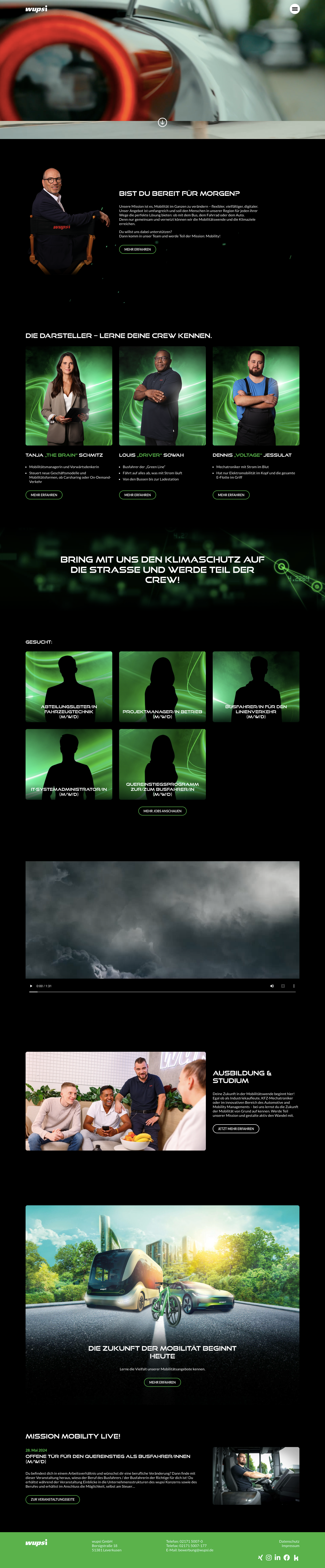 Im Rahmen der Arbeitgeberkampagne für die wupsi hatte eine ansprechende Website oberste Priorität. Denn obwohl sich die wupsi vom „kleinen Busunternehmen“ zu einem integrierten Anbieter von Mobilitätslösungen entwickelt hat, beschränkte sich die öffentliche Wahrnehmung hauptsächlich auf den Betrieb des öffentlichen Busverkehrs. Die damit verbundenen Berufsbilder außerhalb des Busfahrens waren praktisch unbekannt.