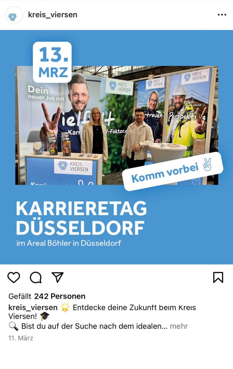 Der allgemeine Fachkräftemangel macht sich auch in der öffentlichen Verwaltung bemerkbar und der Wettbewerb um qualifizierten Mitarbeiter und Mitarbeiterinnen wird immer härter. In diesem Kontext möchte sich der Kreis Viersen als attraktiver Arbeitgeber positionieren und seine Vorteile plakativ herausstellen und kommunizieren.