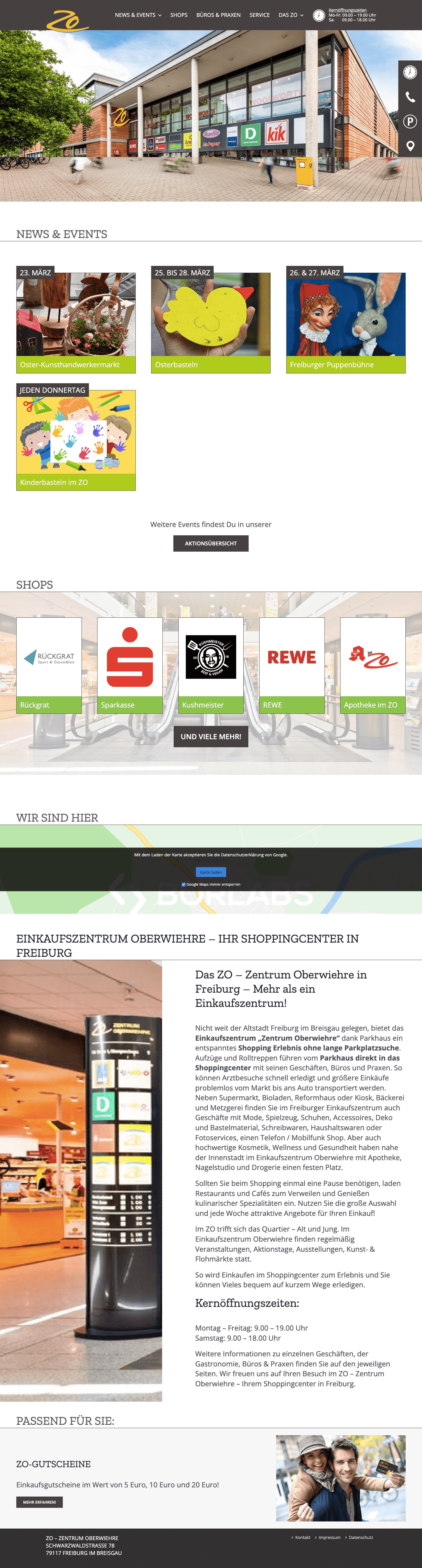 Für unseren Kunden, das Freiburger Zentrum Oberwiehre (ZO), liegt die Aufgabe darin, seine Kommunikation kontinuierlich zu optimieren und ein konsistentes “Look and Feel” gemäß des bestehenden Corporate Designs zu etablieren. Dies umfasst die Betreuung und regelmäßige Aktualisierung der Website.